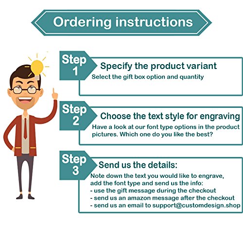 Have a look at your font options in the product pictures. Which one do you like the best?