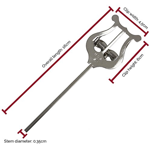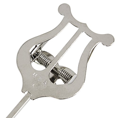 Straight stem lyre suitable for attaching to vertically aligned cornet and trumpet lyre boxes (check your instrument before purchase for suitability). Easy to attach and the ideal accessory for marching musicians and carol players. Nickel plated.