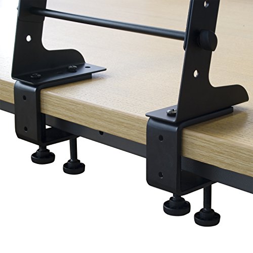 Perfect for musicians and DJs who use a laptop for home, studio or live use. The new Tiger Laptop/DJ Stand is a full metal support bracket that can either clamp onto the back of a table or be fitted with twin weighted feet to simply sit on top of a flat surface and securely elevate and support your laptop with room underneath for a keyboard etc. Weighing a sturdy 1.9kg, the Tiger Laptop/DJ Stand is constructed from strong powder-coated steel and has twin foam padded angled support bars with rubber stoppers to securely support your laptop. Manufactured with high-quality, 3mm thick steel, the support bars offer added security and durability. The two 30.5cm long detachable metal feet allow you to stand the Laptop/DJ Stand anywhere on a flat surface. If clamping to a table, 8mm screws with foam padding to protect the table allow you to adjust the two clamps and attach to any table edge up to 5cm thick. Every contact point is padded with Ethylene vinyl acetate, a rubber-like material renowned for its toughness and long-lasting qualities. A great solution for live performers who use music on a laptop as well as another instrument such as a keyboard at the same time, these great stands are extremely strong, durable, robust and reliable. Item Specifications: - Length of Arms: 25.5cm - Thickness of Padding: 1mm - Weight: 1.9kg- Laptop held in place by 1cm rubber stoppers - Room underneath laptop when in use: 15 20cm - Width of Stand: 27.5cm - Maximum Table Thickness (if using clamps): 5cm - Length of Detachable Feet: 30.5cm - Weight of Detachable Feet: 270gQuality Assurance: We understand the importance of good quality stands; therefore we have paid particular attention to the finest details, ensuring all materials used are of REACH standard and do not compromise the durability or quality of the product. We focus our attention on endorsing safe and strong materials down to the smallest thread.Our stands are made from a high quality, sustainable steel making them resistan